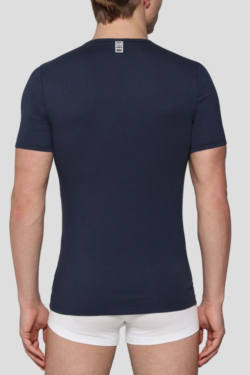 Мужской комплект темно-синих хлопковых футболок от Bikkembergs (Биккембергс). Круглый вырез горловины, логотип сзади, короткий рукав, классическая длина. В комплекте 2 шт
