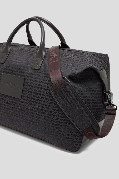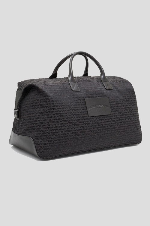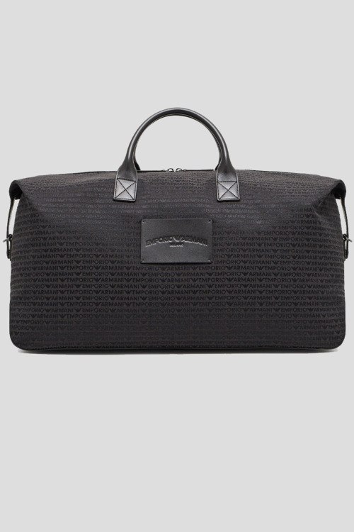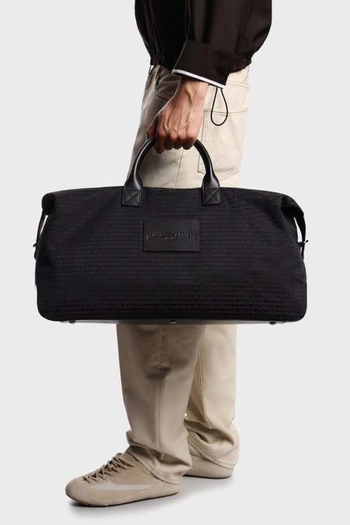 Детали: Мужская черная текстильная дорожная сумка от Emporio Armani (Эмпорио Армани). Принт с логотипом по всей поверхности, нашивка с логотипом, две круглые ручки, съемный плечевой ремень, застежка-молния, одно отделение. Размеры: 58.5 x 29.5 x 35.5 см