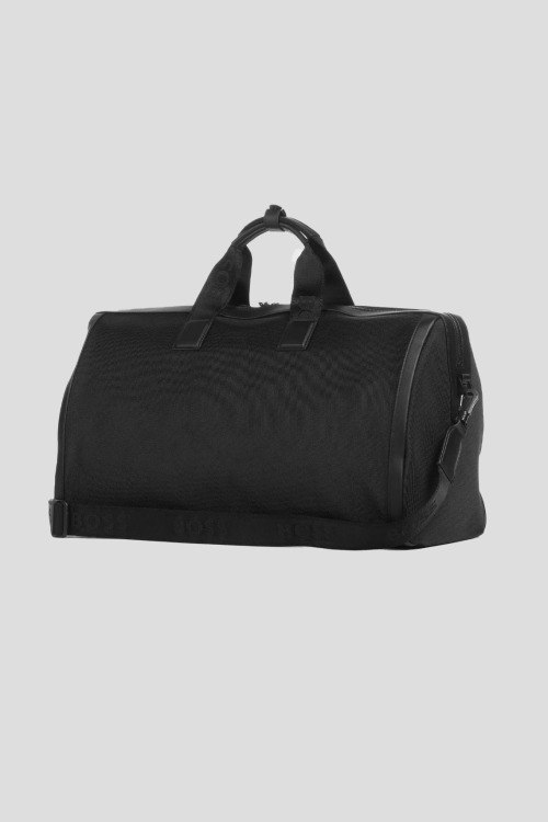 Детали: Мужская черная дорожная сумка из полиэстера от Hugo Boss (Хуго Босс). Одно отделение, застежка на молнию, внешний карман на молнии, две верхние ручки, съемный плечевой ремень, патч-лого. Измерения: 51 x 28 x 24 cм