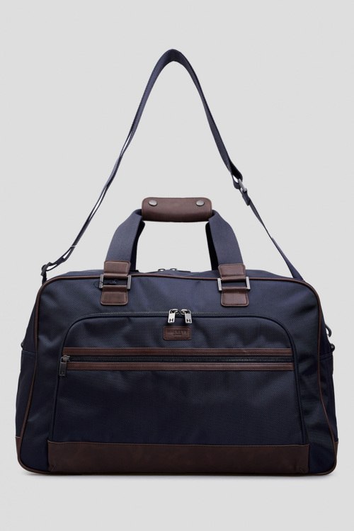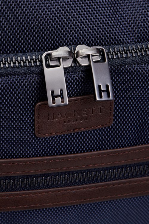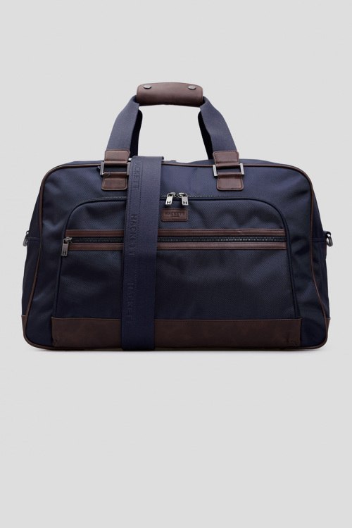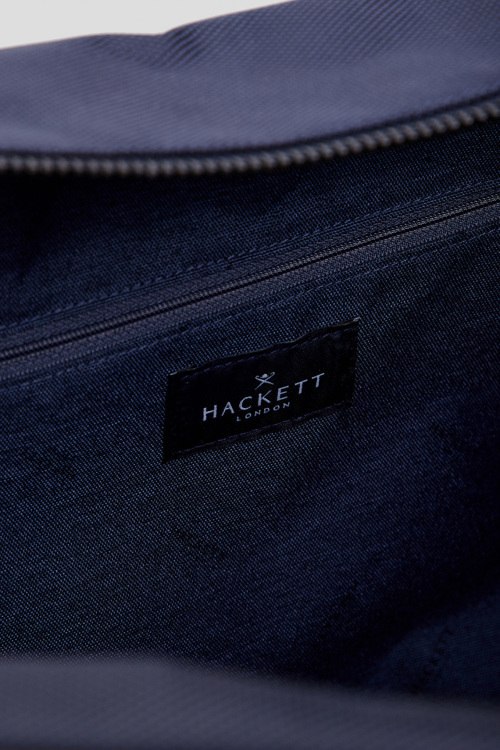 Детали: Мужская темно-синя дорожная сумка из нейлона от Hackett (Хаккетт). Одно отделение, застежка на молнию, внешний карман на молнии, внутренний карман на молнии, две верхние ручки, плечевой ремень, регулируемая ручка высотой 50 см, две несъемные нерегулируемые ручки высотой 20 см. Размер: 56х31х22 см