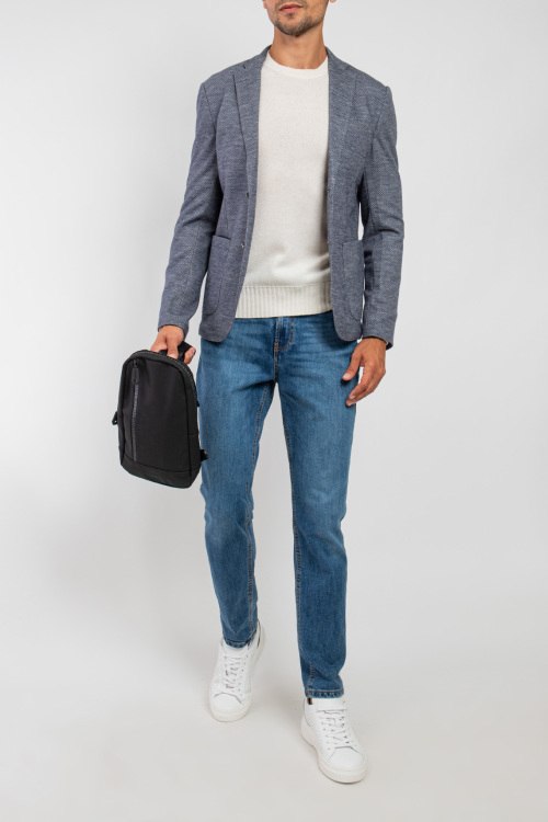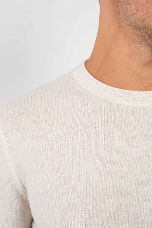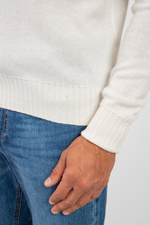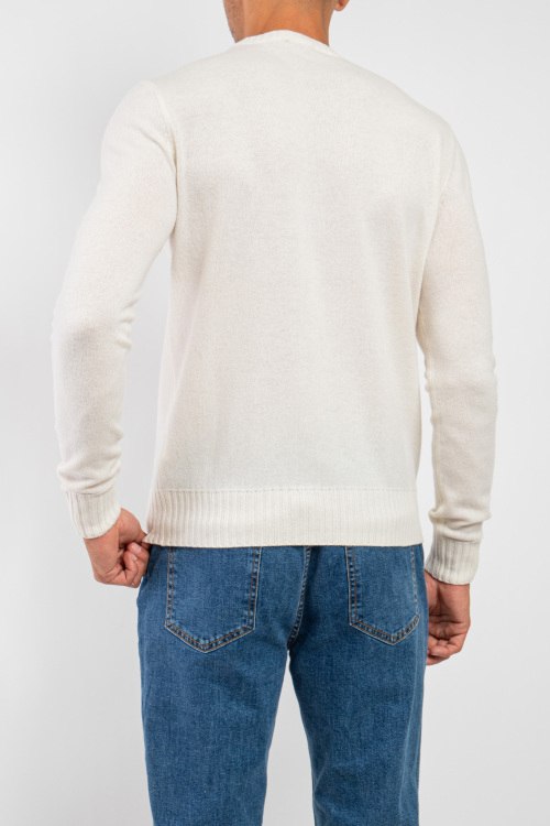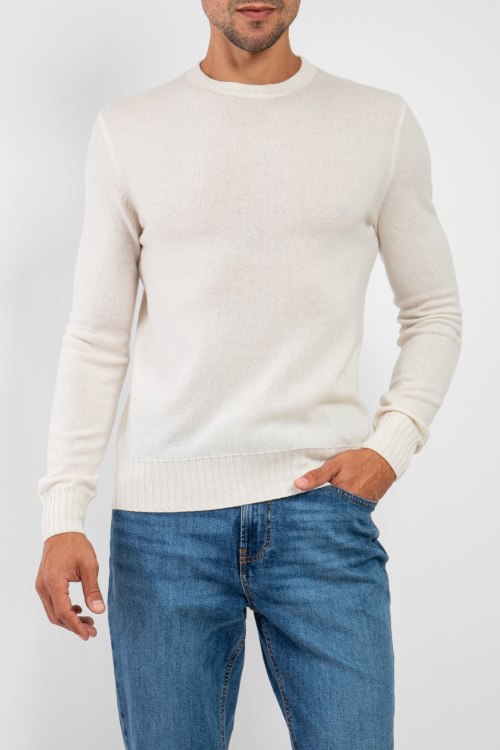Мужской белый кашемировый джемпер от Scabal (Скабал). Круглый вырез горловины, классическая длина, манжеты и нижний край в рубчик.