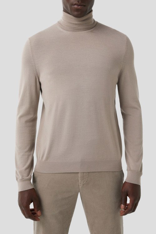 Детали: Мужской бежевый шерстяной гольф Gordon от Bogner (Богнер). Высокая горловина, классическая длина, ребристые манжеты и нижний край