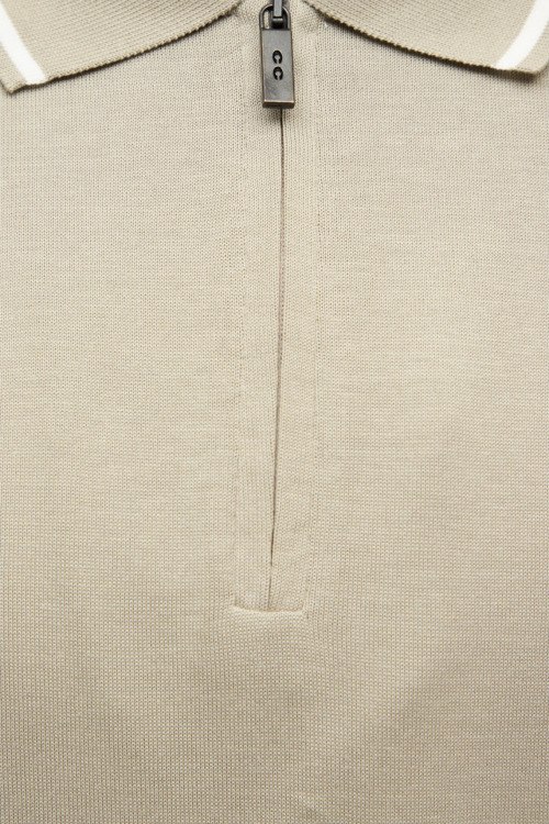 Детали: Мужской бежевый джемпер-поло из хлопка от Corneliani (Корнелиани). Классический воротник, горловина на молнии, короткие рукава. Замеры: длина рукава: короткий, для размера 50 - 24 см, обхват груди: для размера 50 - 108 см, обхват талии: для размера 50 - 100 см, длина изделия по среднему шву спинки от горловины: для размера 50 - 69 см