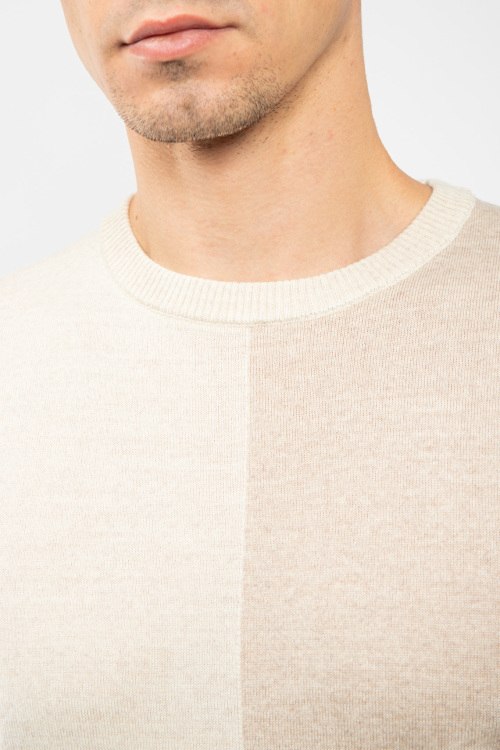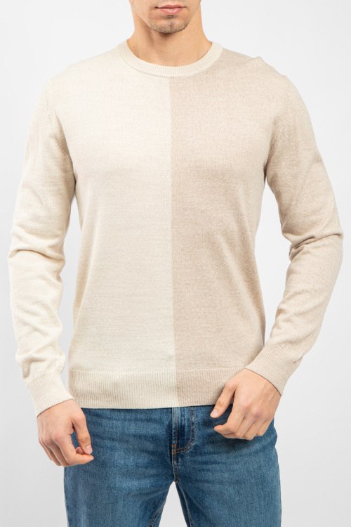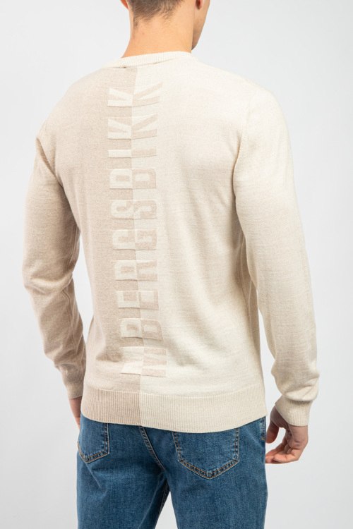 Мужской бежевый джемпер из шерсти и акрила от Bikkembergs (Биккембергс). Логотип на спине, круглый вырез горловины, классическая длина, ребристые манжеты и нижний край.