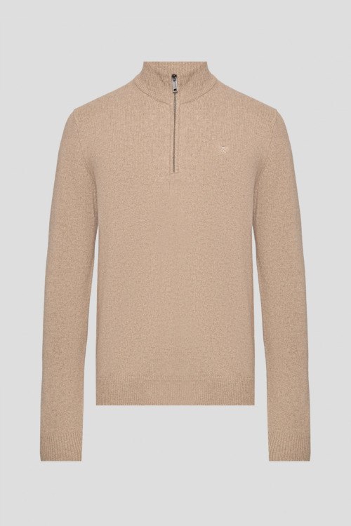 Детали: Мужской бежевый шерстяной джемпер от Hackett (Хаккетт). Логотип на груди, высокий воротник с застежкой на молнию, заплатки на локтях, ребристые манжеты и нижний край. Длина рукава: длинный, для размера М - 65 см, обхват груди: для размера М - 102 см, обхват талии: для размера М - 102 см, длина изделия по среднему шву спинки от горловины: для размера М - 68 см