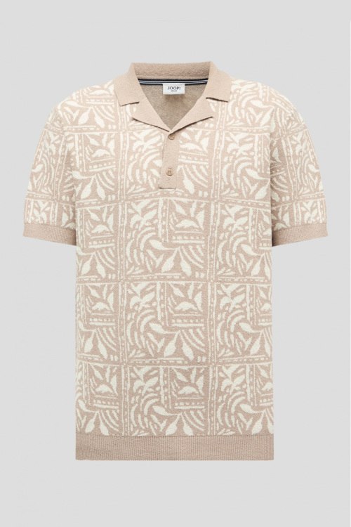 Детали: Мужской бежевый хлопковый джемпер-поло от Joop! (Йооп!). Абстрактный узор, отложной воротник, застежка на две пуговицы, короткий рукав, классическая длина. Длина рукава: короткий, для размера M - 24 см, обхват груди: для размера M - 106 см, обхват талии: для размера M - 102 см, длина изделия по среднему шву спинки от горловины: для размера M - 65 см