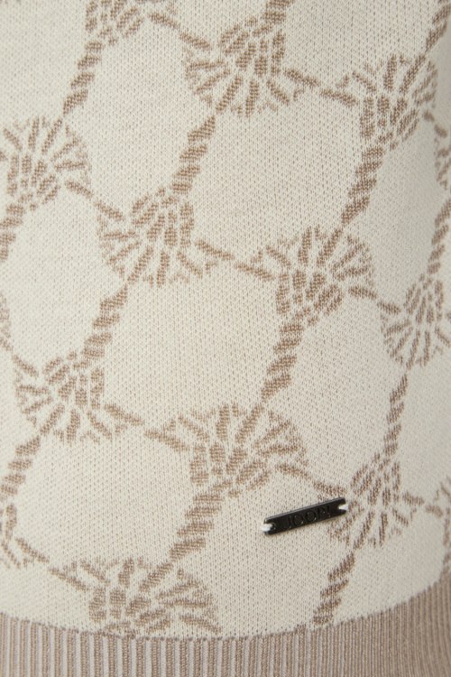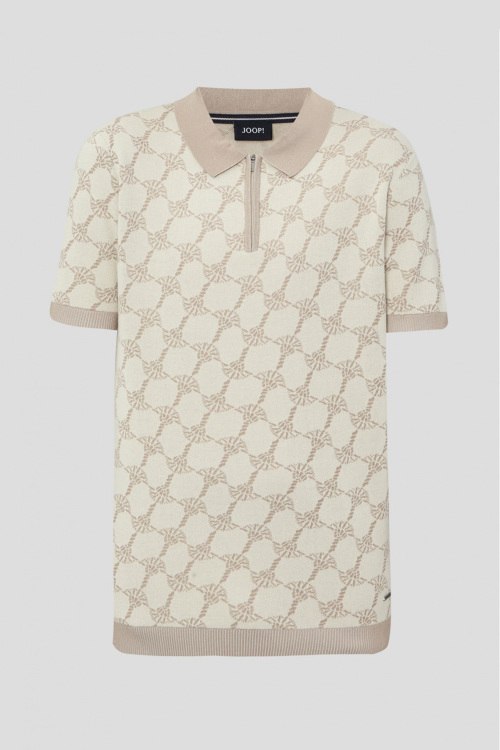 Детали: Мужской бежевый джемпер-поло из хлопка и вискозы от Joop! (Йооп!). Узор паттерн-лого, отложной воротник, застежка-молния, короткий рукав, классическая длина. Длина рукава: короткий, для размера M - 23 см, обхват груди: для размера M - 106 см, обхват талии: для размера M - 104 см, длина изделия по среднему шву спинки от горловины: для размера M - 68 см