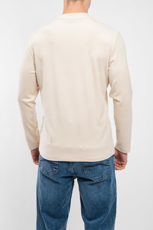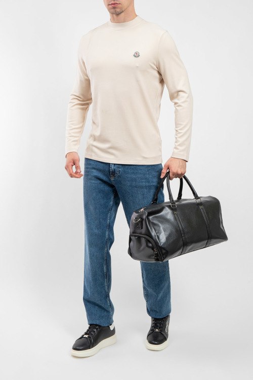 Мужской бежевый лонгслив из хлопка от Moncler (Монклер). Круглый вырез горловины, длинные рукава, патч-лого на груди. Замеры для размера на фото: 2; длина - 67 см; ПОГ - 51 см; ПОТ - 48 см; ПОБ - 48 см; длина по внутреннему шву рукава - 47 см; ширина рукава - 18 см.