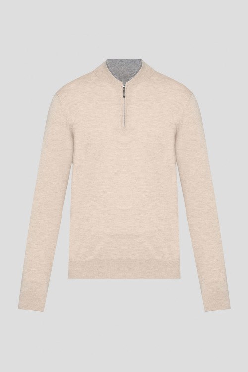 Детали: Мужской бежевый джемпер из шерсти и кашемира от Pal Zileri (Пал Зилери). Воротник-стойка, застежка-молния, длинный рукав, манжеты и нижний край в рубчик. Длина рукава: длинный, для размера 50 - 66 см, обхват груди: для размера 50 - 106 см, обхват талии: для размера 50 - 106 см, длина изделия по среднему шву спинки от горловины: для размера 50 - 68 см