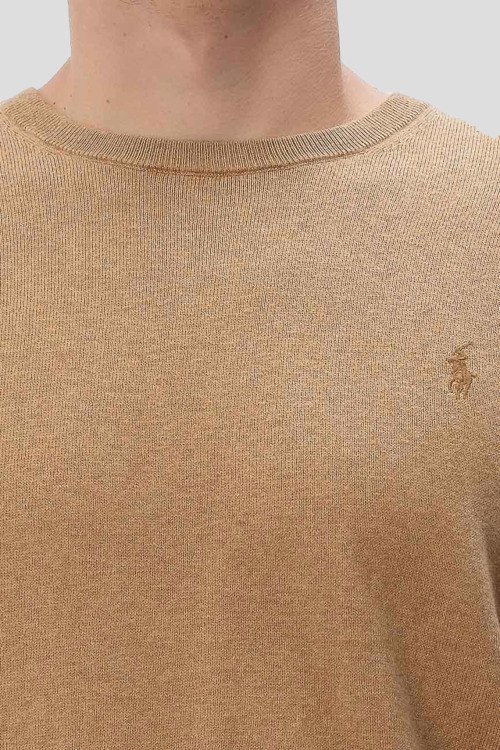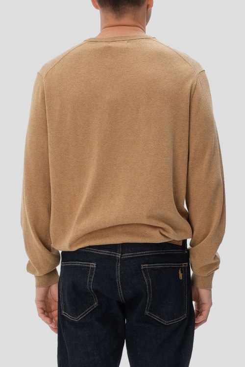 Детали: Мужской бежевый хлопковый джемпер от Polo Ralph Lauren (Поло Ральф Лорен). Модель с примесью кашемира, логотип на груди, круглый вырез горловины, классическая длина