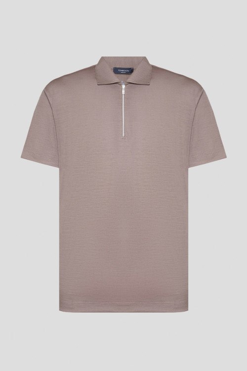 Детали: Мужской бежевый шерстяной джемпер-поло от Tombolini (Томболини). Отложной воротник, застежка-молния, короткий рукав, классическая длина. Длина рукава: короткий, для размера 50 - 20 см, обхват груди: для размера 50 - 110 см, обхват талии: для размера 50 - 110 см, длина изделия по среднему шву спинки от горловины: для размера 50 - 70,5 см