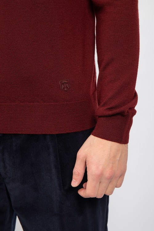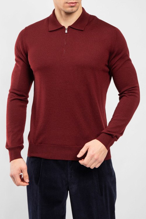 Детали: Мужской бордовый шерстяной джемпер-поло от Corneliani (Корнелиани). Отложной воротник, застежка-молния, классическая длина, ребристые манжеты и нижний край. Размер вещи на фото: 50