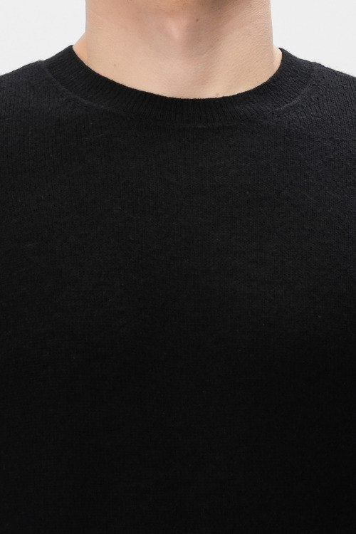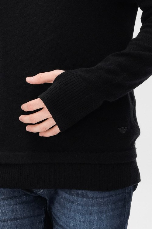 Детали: Мужской черный джемпер из шерсти и кашемира от Emporio Armani (Эмпорио Армани). Нашивка с логотипом, круглый вырез горловины, манжеты с вырезом для большого пальца, классическая длина