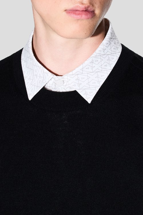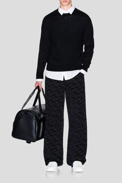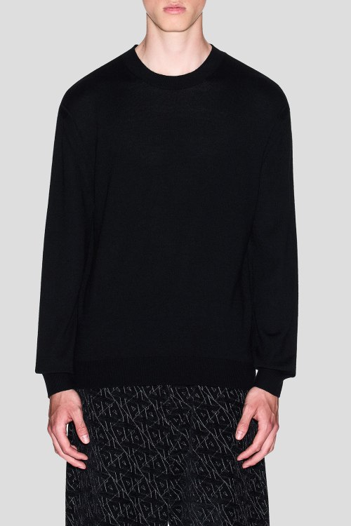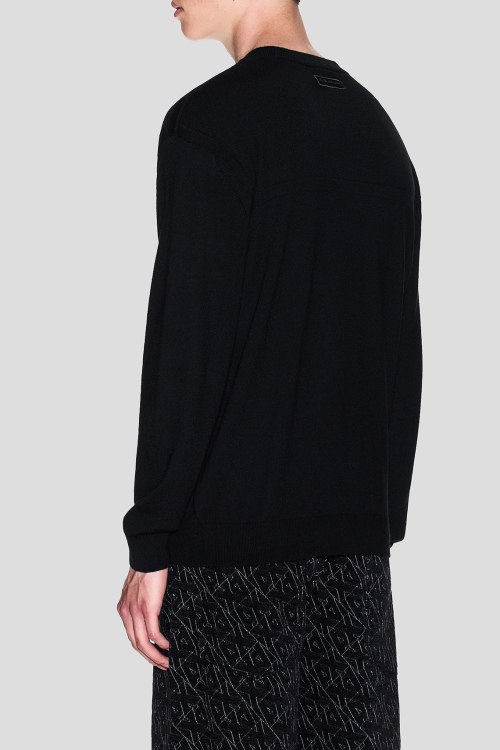 Детали: Мужской черный джемпер из шерсти и акрила от Armani Exchange (Армани Эксчендж). Круглый вырез горловины, классическая длина, ребристые манжеты и нижний край
