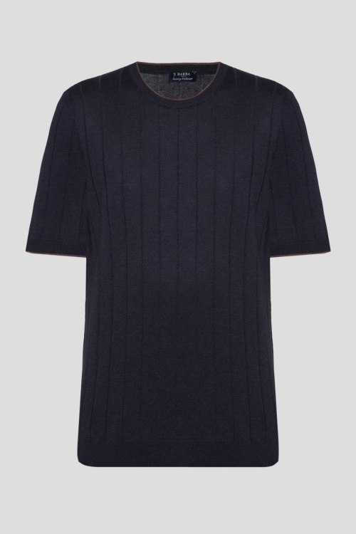 Детали: Мужской черный шелковый джемпер от Barba Napoli (Барба Наполи). Круглый вырез горловины, короткий рукав, манжеты и нижний край в рубчик. Замеры: длина рукава: короткий, для размера 50 - 28 см, обхват груди: для размера 50 - 102 см, обхват талии: для размера 50 - 96 см, длина изделия по среднему шву спинки от горловины: для размера 50 - 67 см