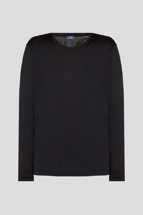 Детали: Мужской черный лонгслив из хлопка от Barba Napoli (Барба Наполи). Классическая длина, свободный фасон, круглый вырез горловины, длинные рукава. Замеры: длина рукава: длинный, для размера 50 - 64 см, обхват груди: для размера 50 - 110 см, обхват талии: для размера 50 - 106 см, длина изделия по среднему шву спинки от горловины: для размера 50 - 68 см