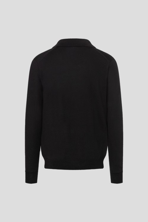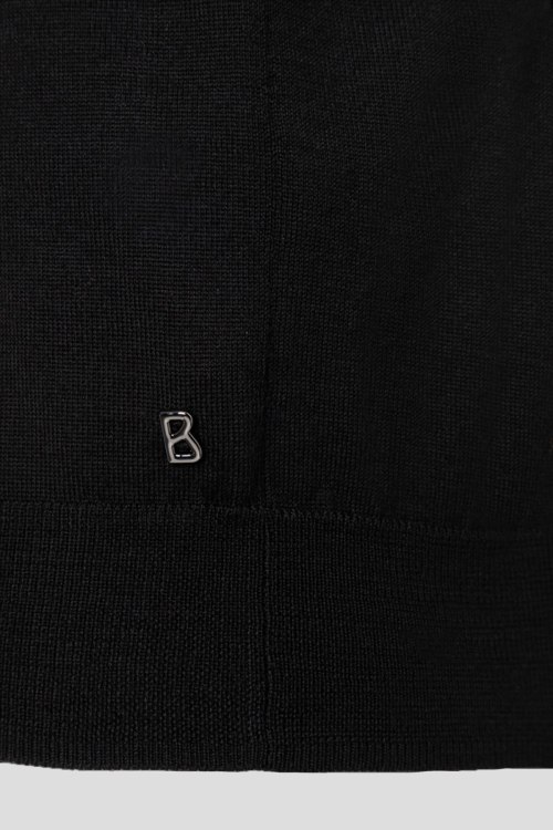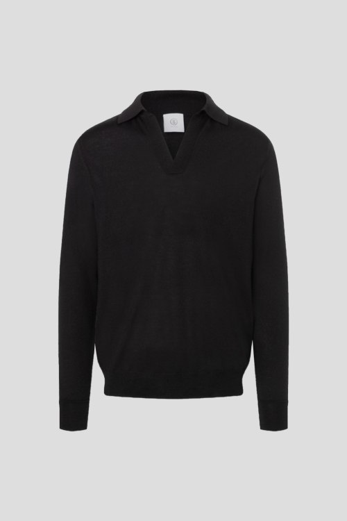 Детали: Мужской черный шерстяной джемпер-поло Omelly от Bogner (Богнер). Отложной воротник, V-образный вырез, длинный рукав, классическая длина