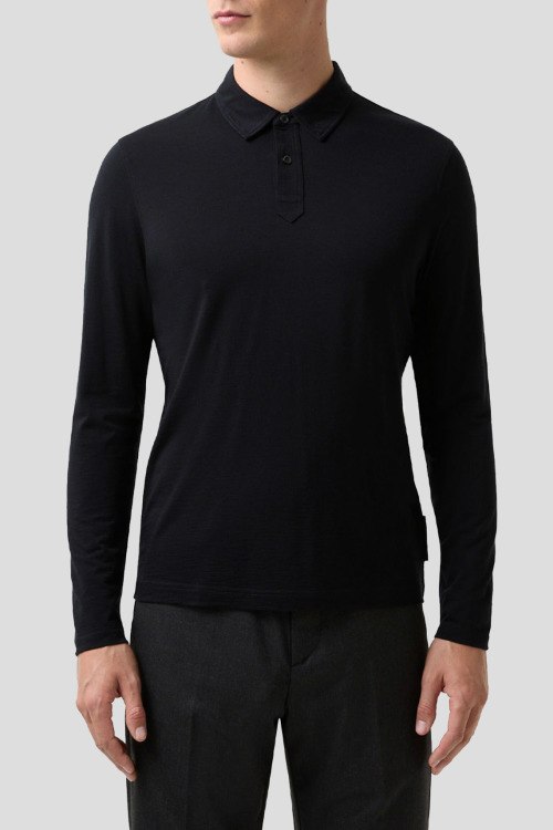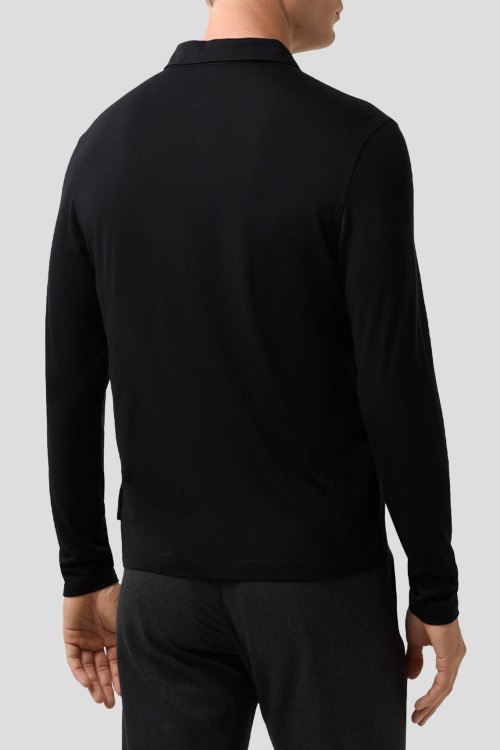 Детали: Мужской черный шерстяной джемпер-поло Lennon от Bogner (Богнер). Отложной воротник, застежка на две пуговицы, длинный рукав, классическая длина