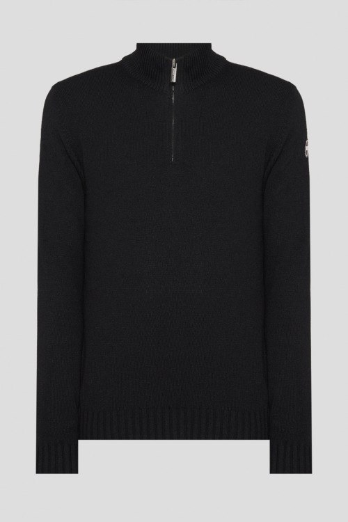 Детали: Мужской черный джемпер из шерсти и вискозы от Colmar (Колмар). Воротник-стойка, застежка-молния, нашивка с логотипом на рукаве, классическая длина, ребристые манжеты и нижний край. Длина рукава: длинный, для размера М - 67 см, обхват груди: для размера М - 102 см, обхват талии: для размера М - 90 см, длина изделия по среднему шву спинки от горловины: для размера М - 66 см