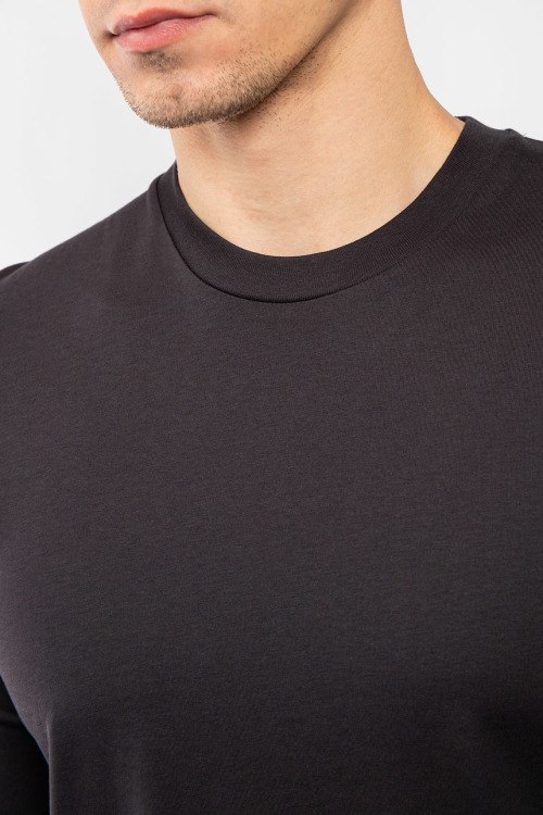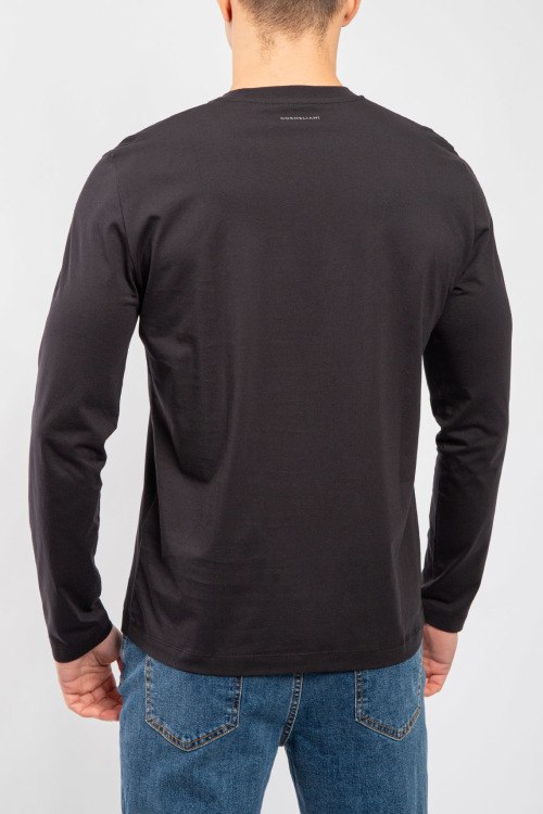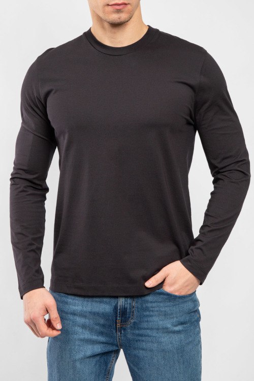 Детали: Мужской черный хлопковый лонгслив от Corneliani (Корнелиани). Круглый вырез горловины, длинный рукав, классическая длина. Размер вещи на фото: 50