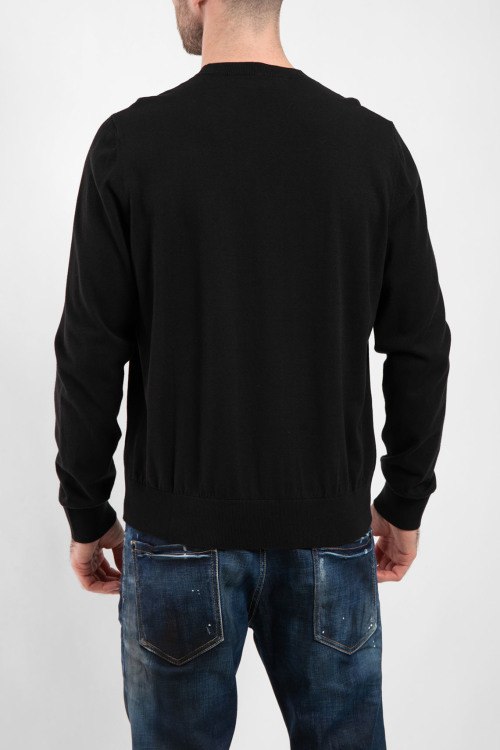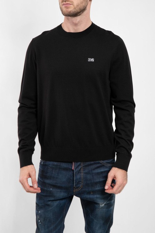 Мужской черный хлопковый джемпер D2 от Dsquared2 (Дискваред). Нашивка с логотипом на груди, круглый вырез горловины, классическая длина, ребристые манжеты и нижний край.