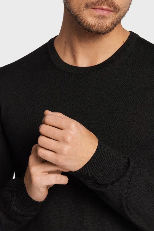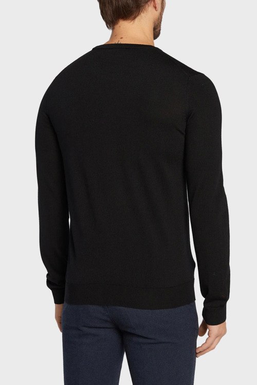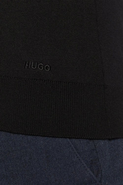 Детали: Мужской черный шерстяной джемпер San Cedric от Hugo by Hugo Boss (Хуго бай Хуго Босс). Вышитый логотип, круглый вырез горловины, классическая длина, ребристые манжеты и нижний край