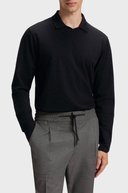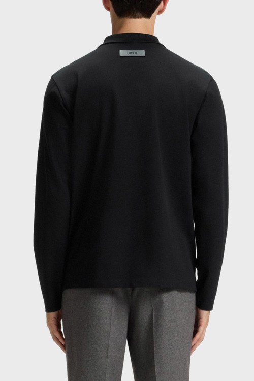 Детали: Мужской черный хлопковый джемпер-поло Dimersvelon от Hugo by Hugo Boss (Хуго бай Хуго Босс). Отложной воротник, длинный рукав, классическая длина