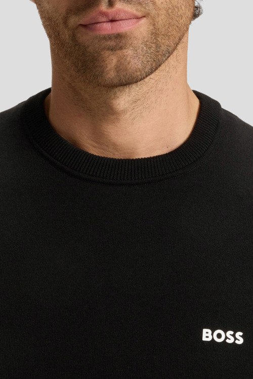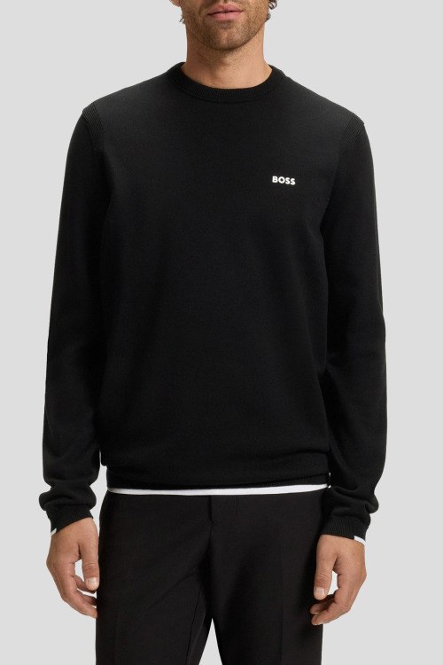 Детали: Мужской черный хлопковый джемпер K_Ever-X от Hugo by Hugo Boss (Хуго бай Хуго Босс). Логотип на груди, круглый вырез горловины, классическая длина, ребристые манжеты и нижний край