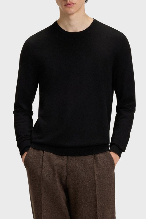 Детали: Мужской черный трикотажный джемпер San Cody от Hugo by Hugo Boss (Хуго бай Хуго Босс). Круглый вырез горловины, длинный рукав, классическая длина