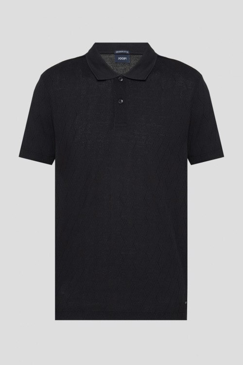 Детали: Мужской черный хлопковый джемпер-поло от Joop! (Йооп!). Фактурный узор, отложной воротник, застежка на две пуговицы, короткий рукав. Длина рукава: короткий, для размера М - 22 см, обхват груди: для размера М - 104 см, обхват талии: для размера М - 104 см, длина изделия по среднему шву спинки от горловины: для размера М - 71 см