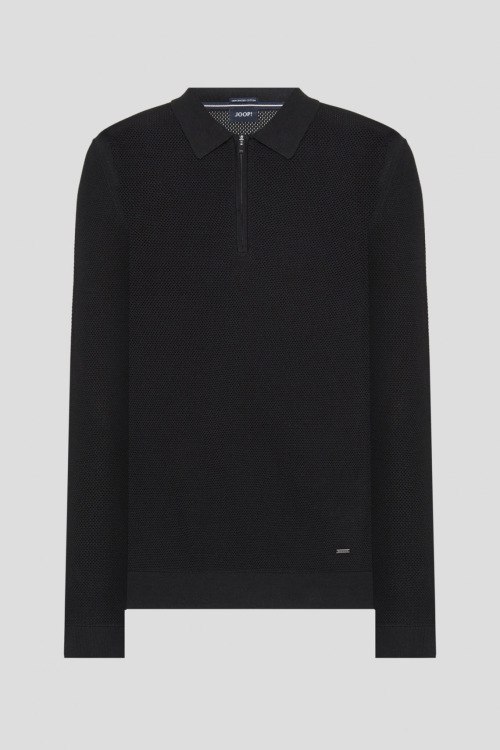 Детали: Мужской черный хлопковый джемпер-поло от Joop! (Йооп!). Отложной воротник, застежка-молния, длинный рукав, классическая длина. Длина рукава: длинный, для размера M - 66 см, обхват груди: для размера M - 108 см, обхват талии: для размера M - 108 см, длина изделия по среднему шву спинки от горловины: для размера M - 69 см