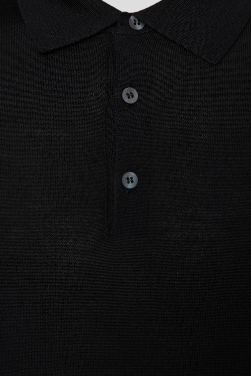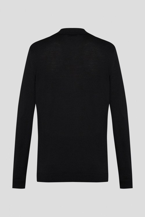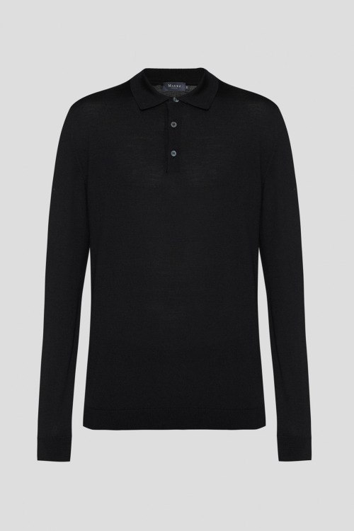 Детали: Мужской черный джемпер-поло из шерсти, шелка и кашемира от Maerz (Маерз). Классический воротник, горловина на пуговицах, длинные рукава, манжеты и низ изделия в рубчик. Измерения: длина рукава: длинный, для размера 50 - 64 см, обхват груди: для размера 50 - 104 см, обхват талии: для размера 50 - 100 см, длина изделия по среднему шву спинки от горловины: для размера 50 - 71 см