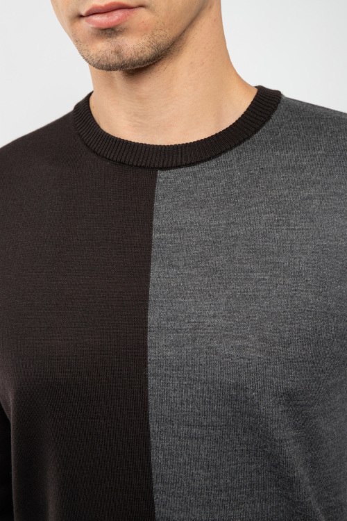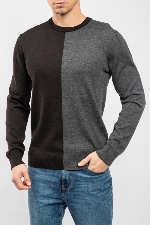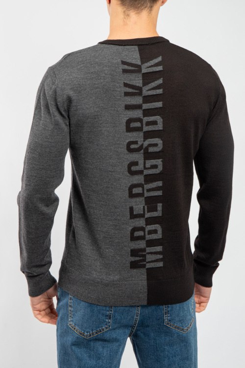 Мужской черно-серый джемпер из шерсти и акрила от Bikkembergs (Биккембергс). Логотип на спине, круглый вырез горловины, классическая длина, ребристые манжеты и нижний край.