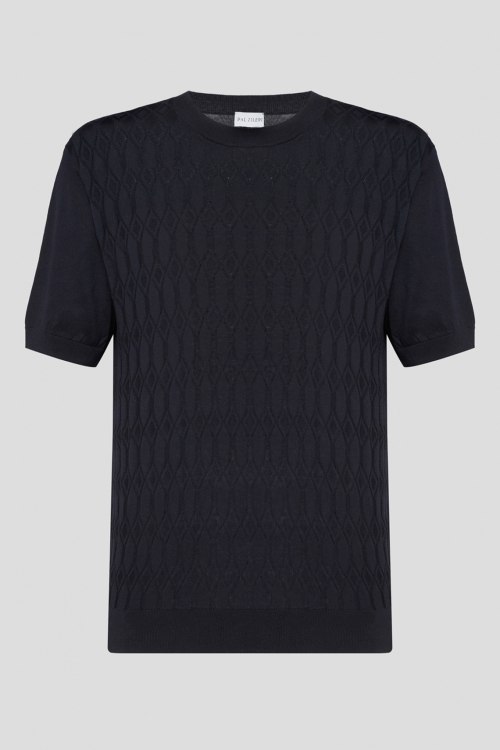 Детали: Мужской черный джемпер из шелка и хлопка от Pal Zileri (Пал Зилери). Ромбовидный узор, круглый вырез горловины, короткий рукав, классическая длина. Длина рукава: короткий, для размера 50 - 25 см, обхват груди: для размера 50 - 104 см, обхват талии: для размера 50 - 98 см, длина изделия по среднему шву спинки от горловины: для размера 50 - 69 см