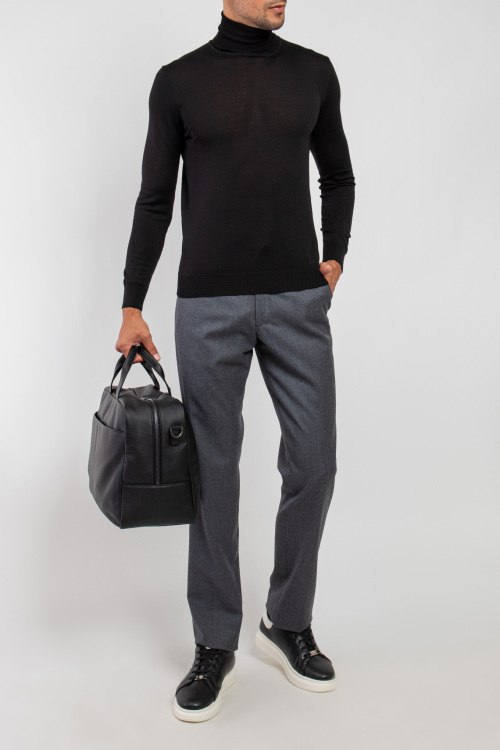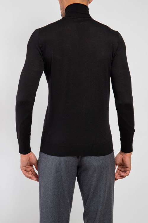 Мужской черный шерстяной гольф от Scabal (Скабал). Высокая горловина, классическая длина, манжеты и нижний край в рубчик.