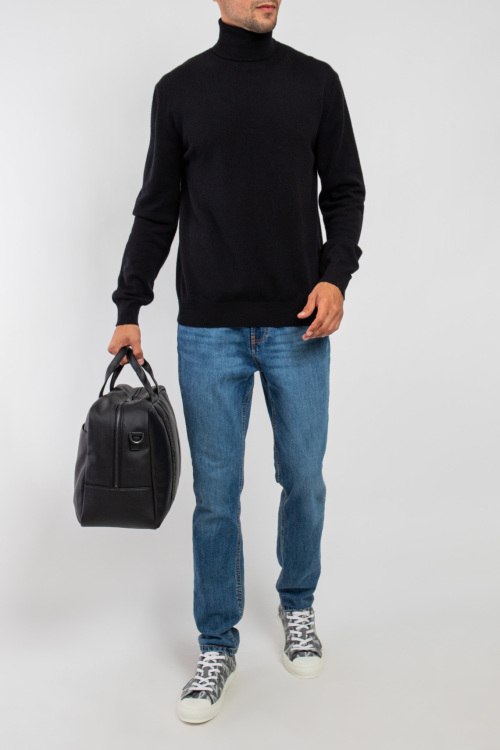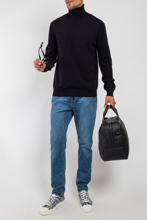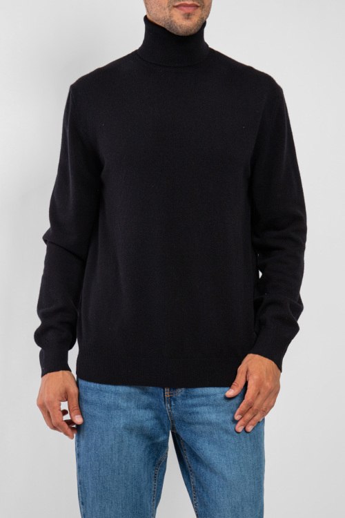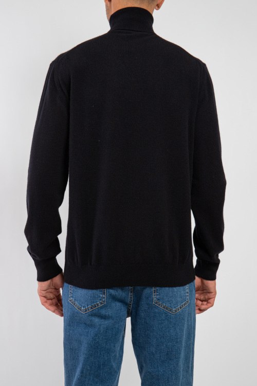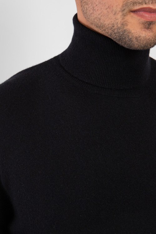 Мужской черный кашемировый гольф от Scabal (Скабал). Высокая горловина, классическая длина, манжеты и нижний край в рубчик.
