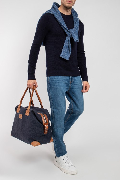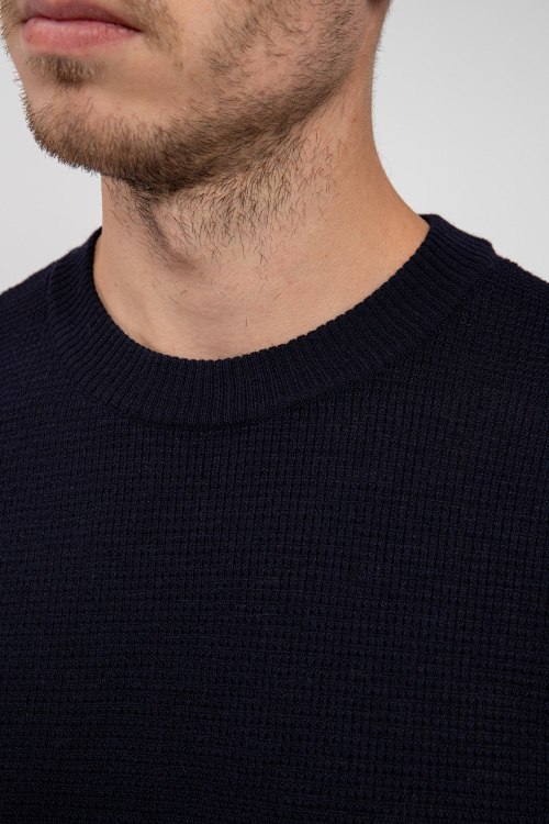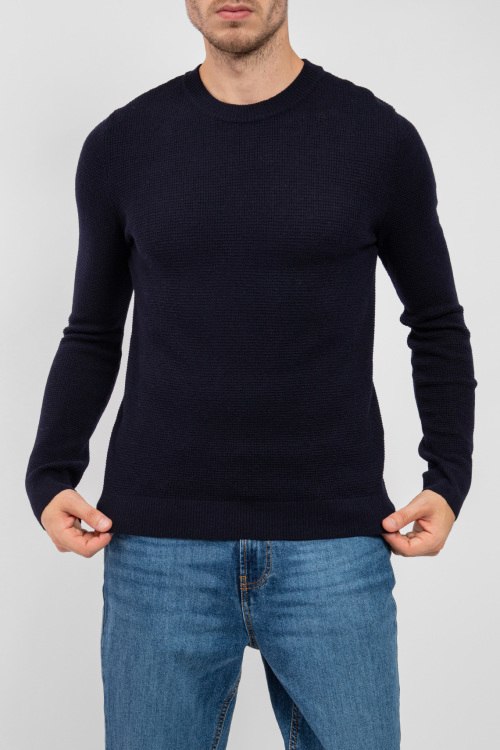 Мужской черный шерстяной джемпер от Scabal (Скабал). Классическая вязка, круглый вырез горловины, классическая длина, манжеты и нижний край в рубчик.