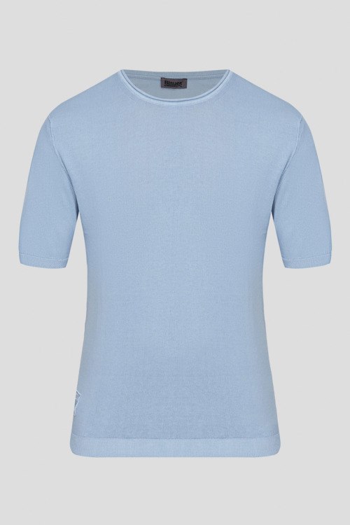 Детали: Мужской голубой джемпер из хлопка от Blauer (Блауэр). Классическая длина, круглый вырез горловины, короткие рукава, нашивка с логотипом бренда, трикотажная резинка по низу изделия. Измерения: длина рукава: короткий, для размера М - 26 см, обхват груди: для размера М - 94 см, обхват талии: для размера М - 90 см, длина изделия по среднему шву спинки от горловины: для размера М - 64 см