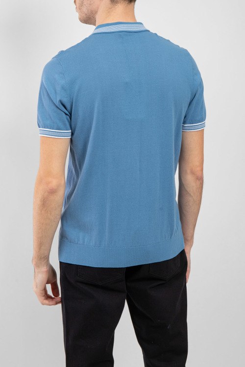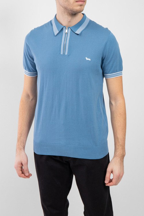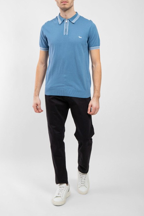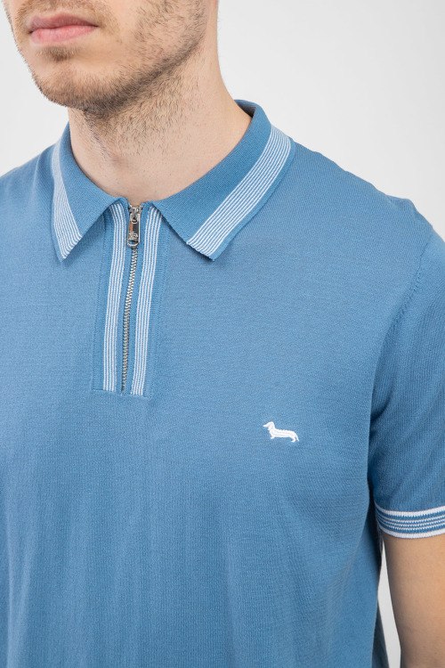 Мужской голубой хлопковый джемпер-поло от Harmont & Blaine (Хармонт энд Блейн). Логотип на груди, отложной воротник, застежка-молния, короткий рукав, классическая длина.