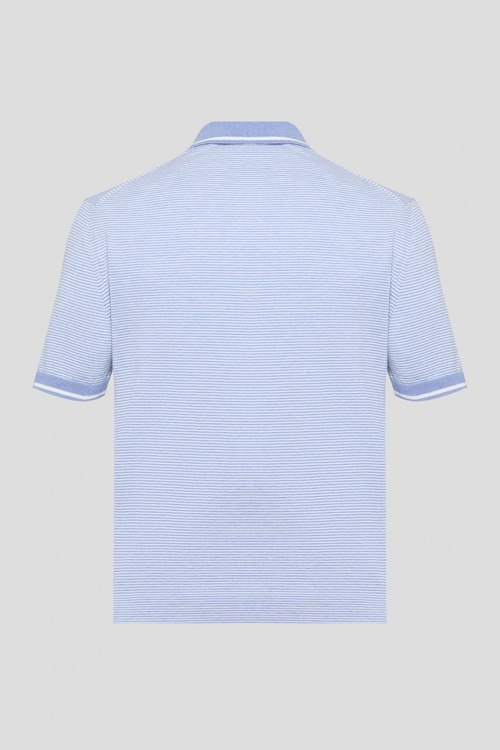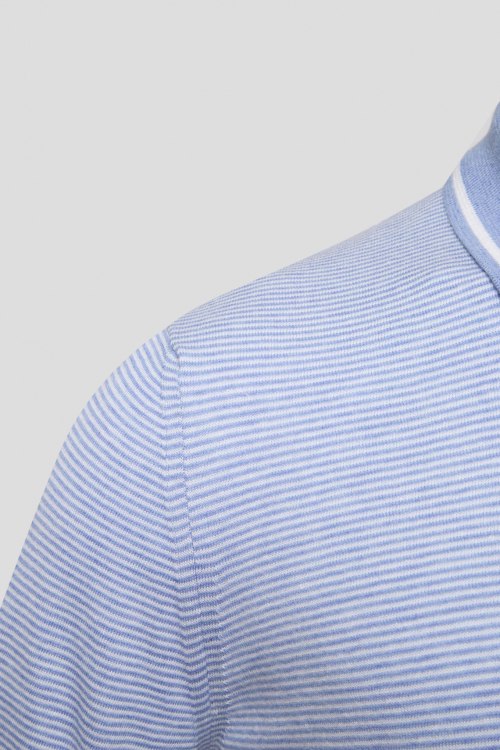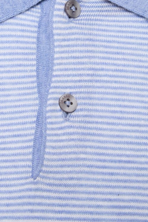 Детали: Мужской голубой джемпер-поло из хлопка и льна от Maerz (Маерз). Полоска по всей поверхности, отложной воротник, застежка на две пуговицы, короткий рукав, классическая длина. Обхват груди: для размера 50 - 108 см, обхват талии: для размера 50 - 106 см, длина изделия по среднему шву спинки от горловины: для размера 50 - 66 см