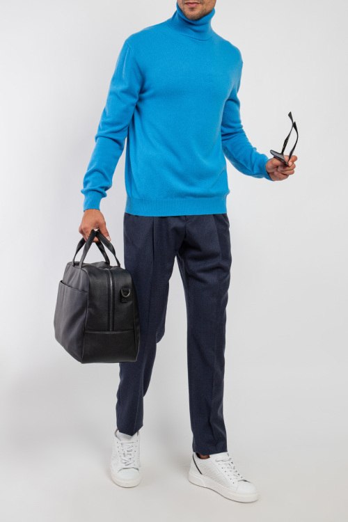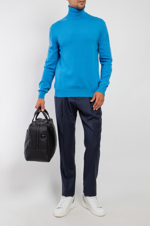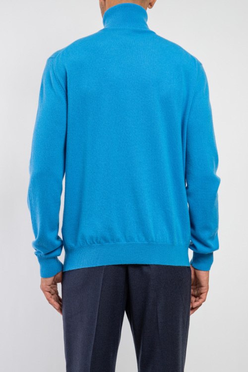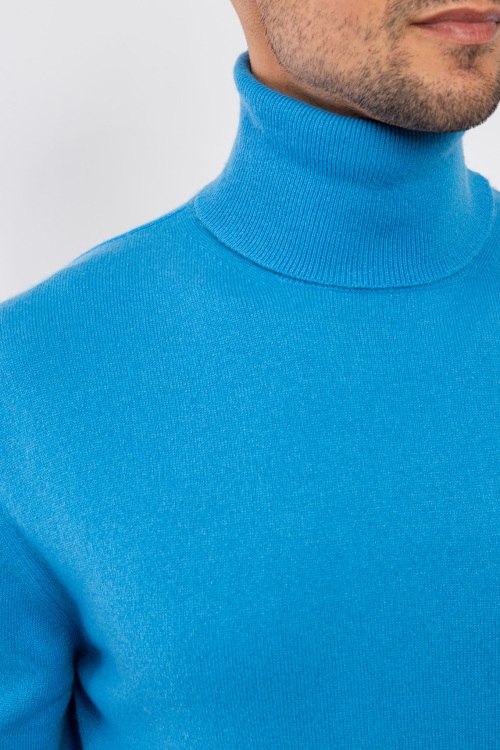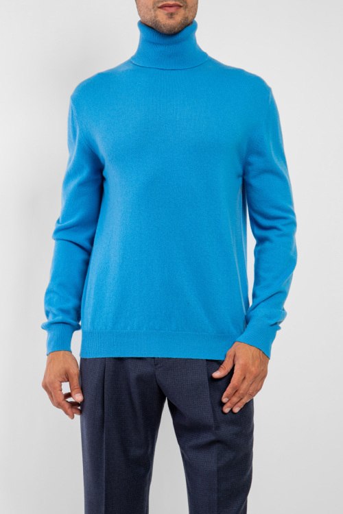 Мужской голубой кашемировый гольф от Scabal (Скабал). Высокая горловина, классическая длина, манжеты и нижний край в рубчик.
