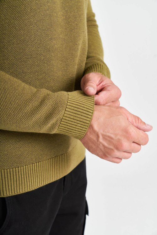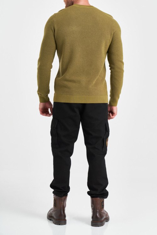 Детали: Мужской джемпер из шерсти и хлопка цвета хаки от Aeronautica Militare (Аэронавтика Милитари). Вышитый логотип на груди, круглый вырез горловины, классическая длина, манжеты и нижний край в рубчик