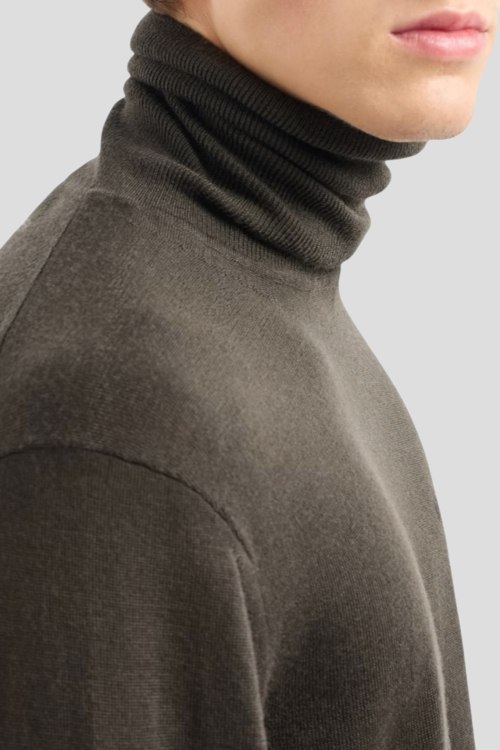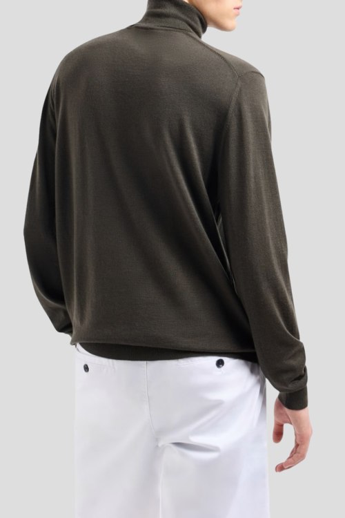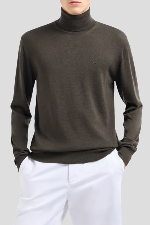 Детали: Мужской хлопковый гольф цвета хаки от Armani Exchange (Армани Эксчендж). Вышитый логотип на груди, высокая горловина, классическая длина, манжеты и нижний край в рубчик