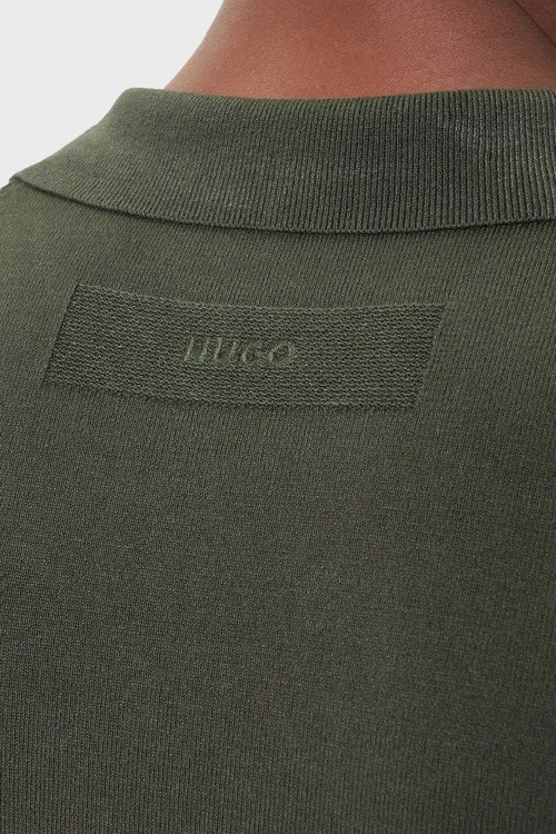 Детали: Мужской трикотажный джемпер-поло цвета хаки San Peter от Hugo by Hugo Boss (Хуго бай Хуго Босс). Отложной воротник, застежка на три кнопки, короткий рукав, классическая длина
