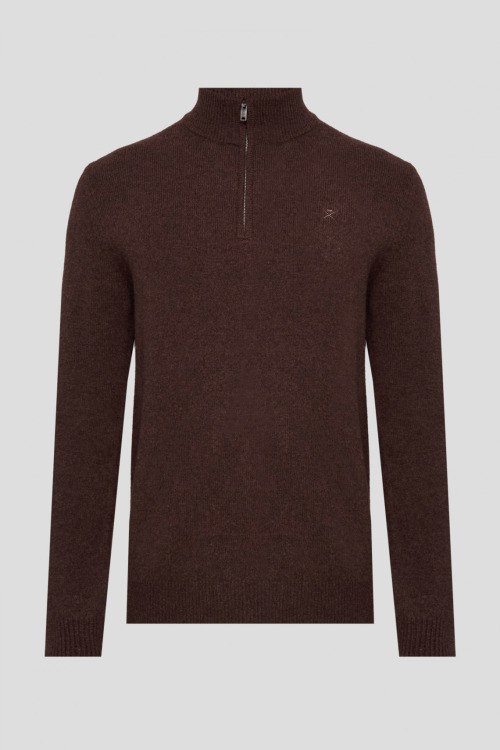 Детали: Мужской темно-коричневый шерстяной джемпер от Hackett (Хаккетт). Логотип на груди, высокий воротник с застежкой на молнию, заплатки на локтях, ребристые манжеты и нижний край. Длина рукава: длинный, для размера М - 65 см, обхват груди: для размера М - 102 см, обхват талии: для размера М - 102 см, длина изделия по среднему шву спинки от горловины: для размера М - 68 см