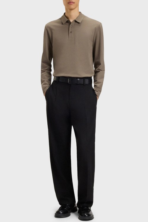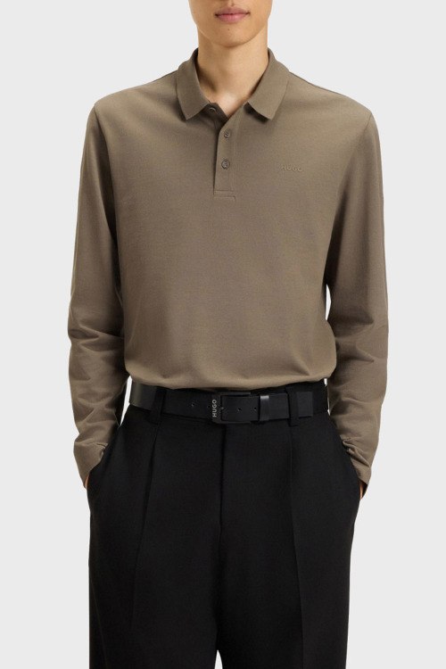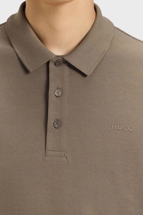 Детали: Мужской светло-коричневый хлопковый джемпер-поло Donoslong от Hugo by Hugo Boss (Хуго бай Хуго Босс). Логотип на груди, отложной воротник, застежка на три пуговицы, классическая длина