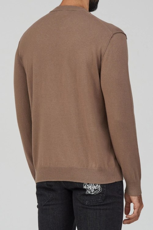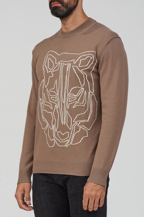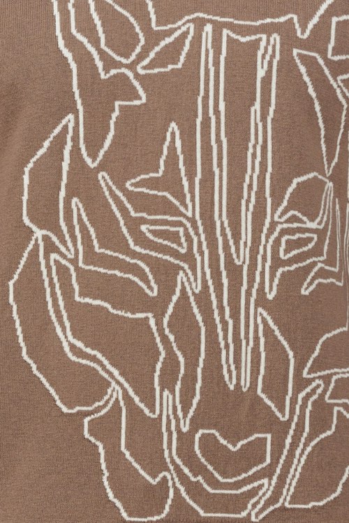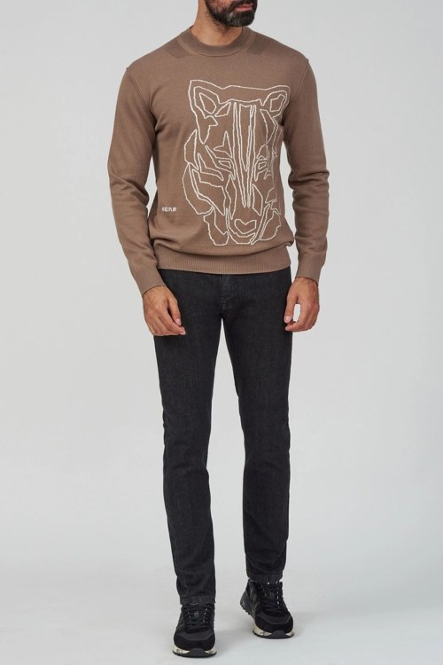 Детали: Мужской коричневый джемпер из хлопка и шерсти от Ice Play (Айс Плей). Узор на груди, круглый вырез горловины, классическая длина, манжеты и нижний край в рубчик