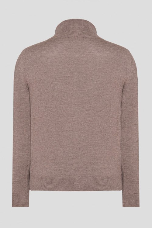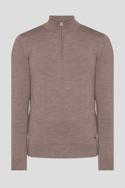 Детали: Мужской светло-коричневый шерстяной джемпер от Joop! (Йооп!). Воротник-стойка с застежкой на молнию, классическая длина, ребристые манжеты и нижний край. Длина рукава: длинный, для размера М - 68 см, обхват груди: для размера М - 108 см, обхват талии: для размера М - 106 см, длина изделия по среднему шву спинки от горловины: для размера М - 70 см