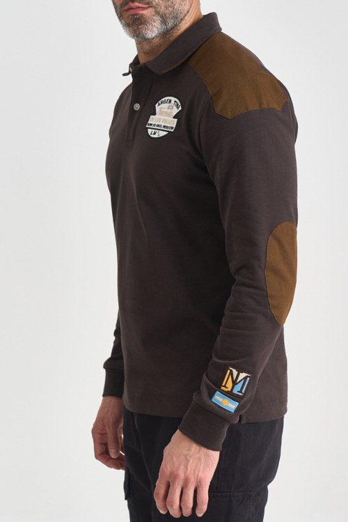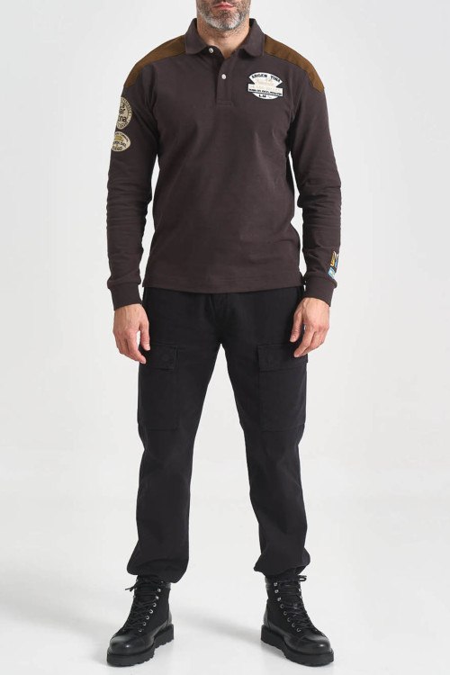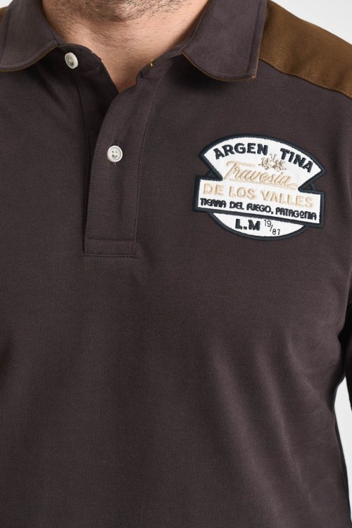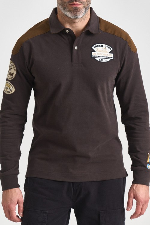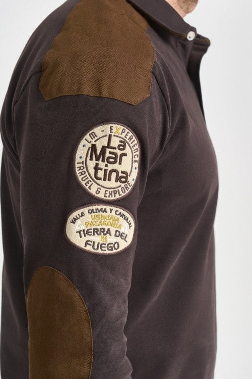 Детали: Мужской темно-коричневый хлопковый джемпер-поло от La Martina (Ла Мартина). Брендовые нашивки, отложной воротник, застежка на две пуговицы, длинный рукав, классическая длина. Параметры модели: 103 см - 87 см - 99 см. Рост - 182 см. Размер на фото - L