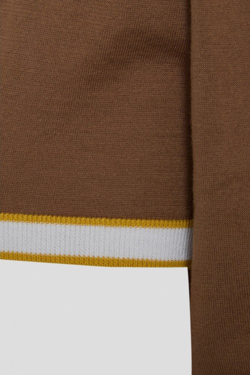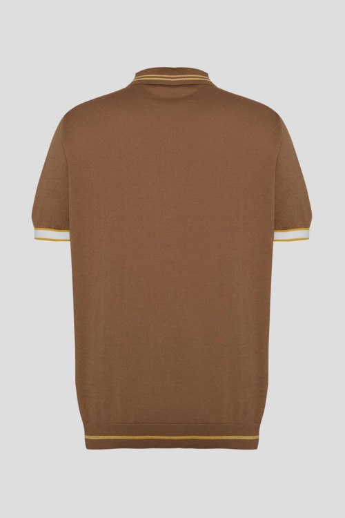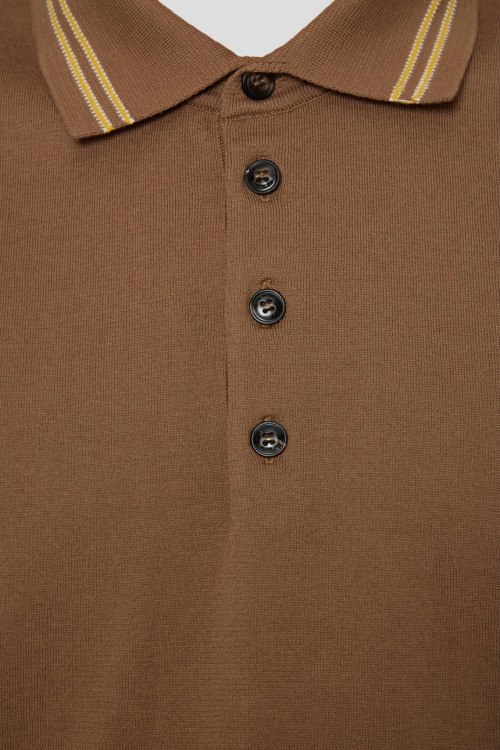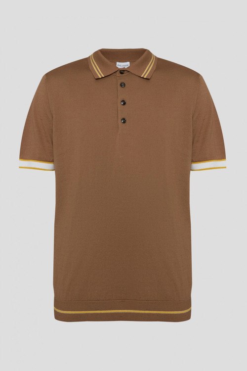 Мужской коричневый джемпер-поло из хлопка от Pal Zileri (Пал Зилери). Классический воротник, горловина на пуговицах, трикотажная резинк на манжетах и по низу изделия. Замеры: длина рукава: короткий, для размера 50 - 25 см, обхват груди: для размера 50 - 114 см, обхват талии: для размера 50 - 110 см, длина изделия по среднему шву спинки от горловины: для размера 50 - 68 см.